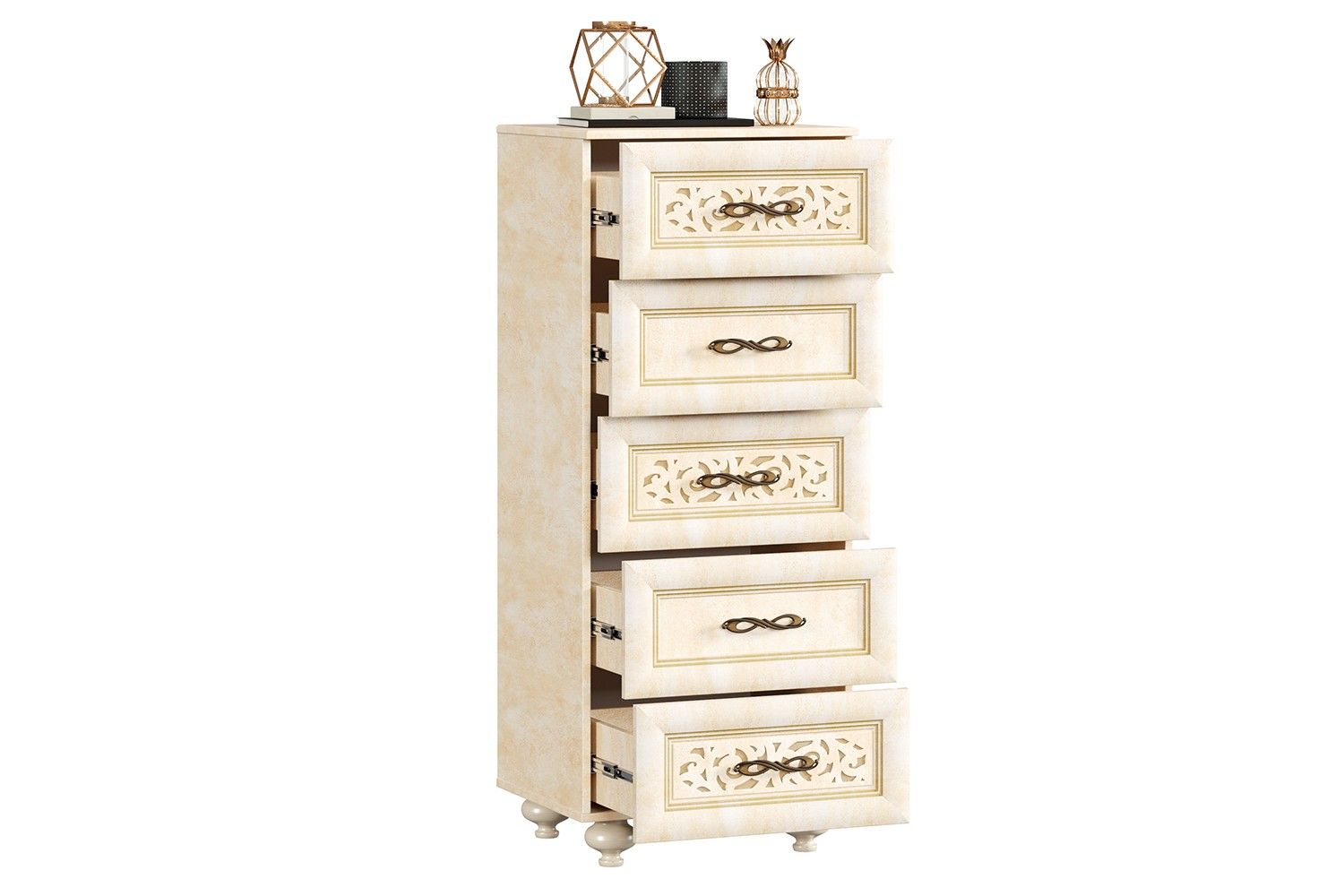 • 5 roll-out drawers on ball guides. • Maximum load on a roll-out box is 5 kg. • After assembly, it is recommended to attach the chest of drawers to the wall using a corner hanger