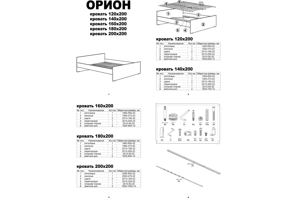 Մեկ մահճակալի առավելագույն ծանրաբեռնվածություն 140 կգ