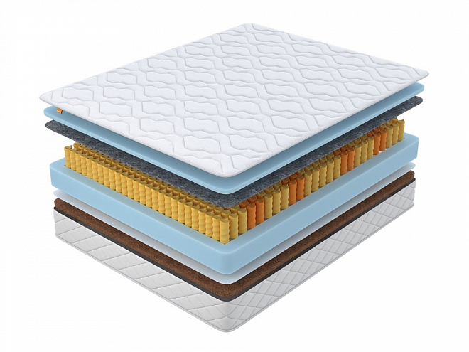 Շերտերը՝ աստառ ֆիլ,Volumized Felt , High-Density Ormafoam, անկախ զսպանակային շերտ EVS 9 zone(512 զսպանակ յուրաքանչյուր քնատեղի համար), սպանբոնդ, կոկոս