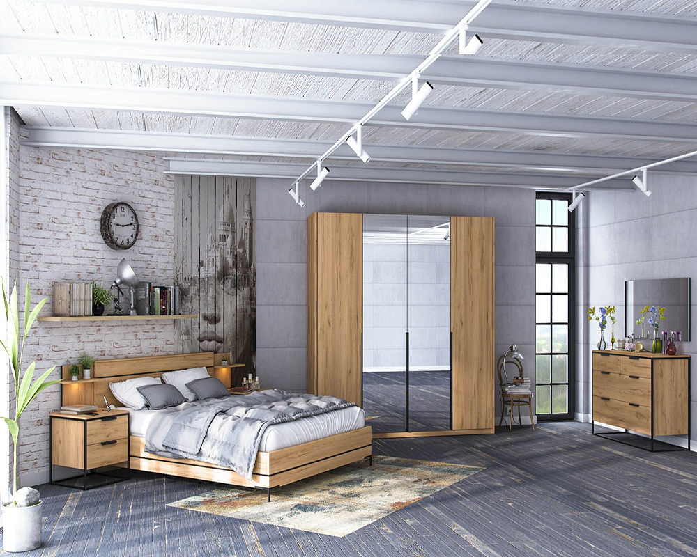 Հավաքածուն ներառում է՝ մահճակալ-առանց պահոց, ՄԴՖ և ԼԴՍՊ, օրթոպեդ հիմք, չափս-1870*2110*910, զգեստապահարան 4դուռ-ՄԴՖ և ԼԴՍՊ, 2դուռ փակ, 2դուռը հայելի, 2դուռը՝ կախիչ,2դուռը՝ դարակաշար, չափսը՝ 2192*590*2300, կոմոդ ՝ 1198*460*810, տումբա՝ 560*460*480