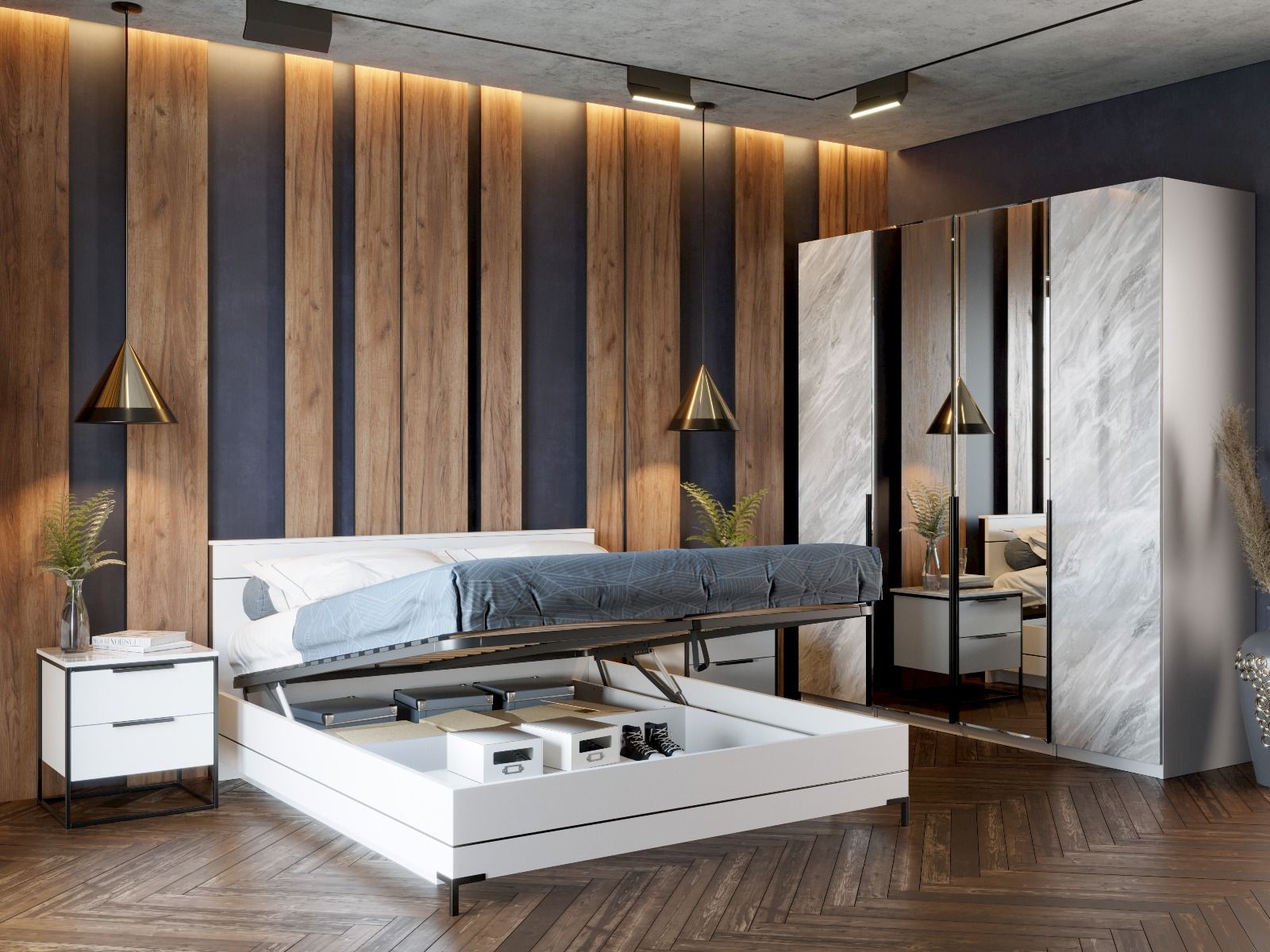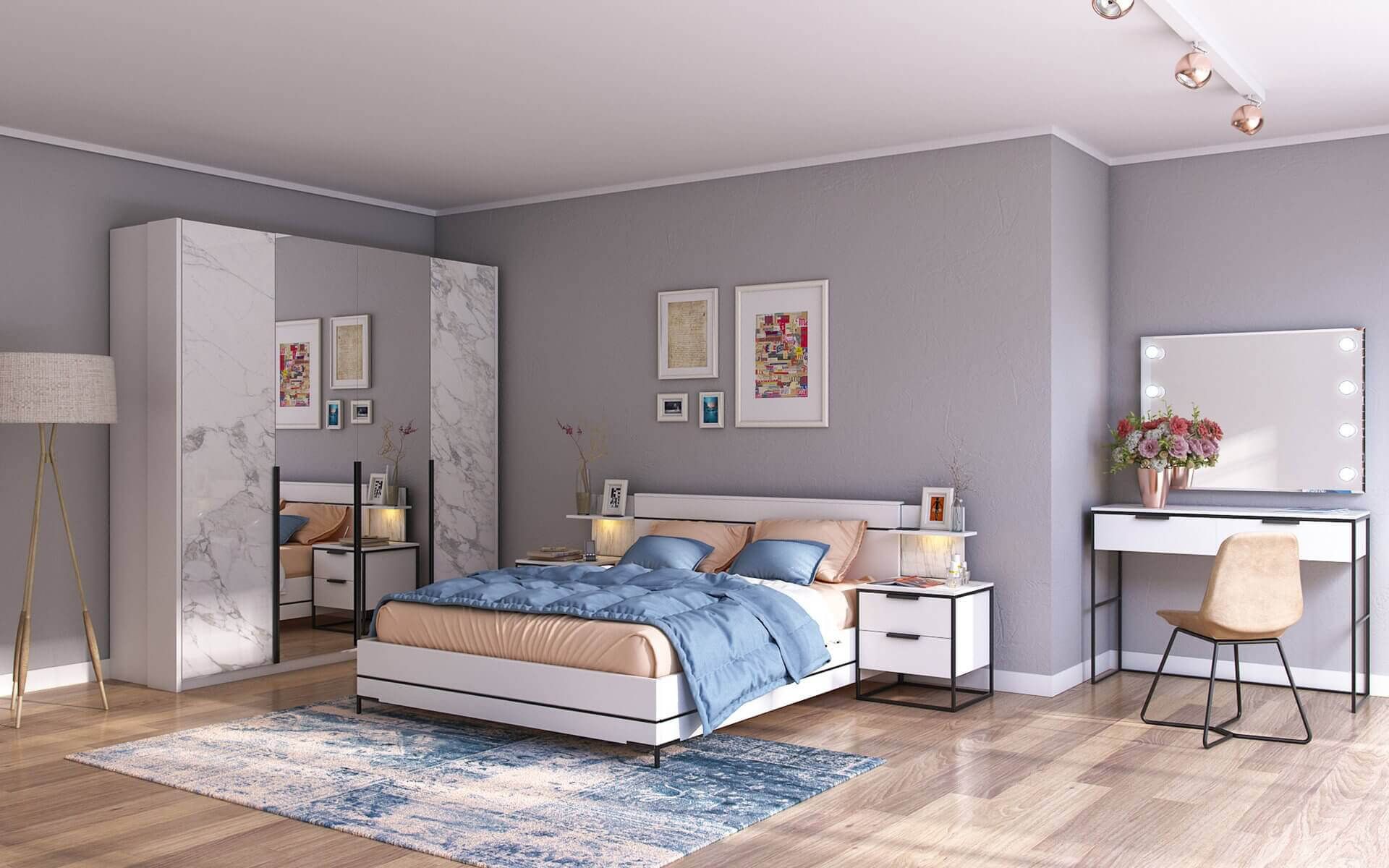 Հավաքածուն ներառում է՝ մահճակալ-պահոցով, ՄԴՖ և ԼԴՍՊ, օրթոպեդ հիմք, չափս-1670*2110*910, զգեստապահարան 4դուռ-ՄԴՖ և ԼԴՍՊ, 2դուռ փակ,2դուռը հայելի, 2դուռը՝ կախիչ, 2դուռը՝ դարակաշար, չափսը՝ 2192*590*2300, կոմոդ ՝ 1198*457*900, տումբա՝ 502*457*550