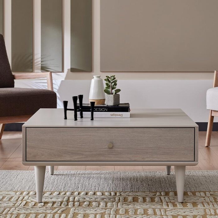 Մարմին - ԴՍՊ Ոտքեր՝ մետաղական Երաշխիք՝ 2 տարի Սեղանը պատրաստված է ժամանակակից ոճով։ Պարզ ձևի, թեթև մետաղական ոտքերի և կաղնու թեթև հյուսվածքի համադրության շնորհիվ սեղանն ընդգծում է տարածության նրբագեղությունն ու պարզությունը։ Ամսագրեր և այլ մանր իրեր պահելու համար նախատեսված երկու գզրոցների առկայությունը սեղանը դարձնում է ավելի ֆունկցիոնալ և բազմակողմանի օգտագործման մեջ: Իր կահույքի համար գործարանն օգտագործում է կցամասեր Samet-ից, որը հանդիսանում է թուրքական կահույքի կցամասերի շուկայում առաջատարը: Գզրոցների համար օգտագործվում է 8 մմ լամինացված դիսփլեյ: Գործարանը մեծ ուշադրություն է դարձնում դետալներին՝ գզրոցների ներքին մակերեսին օգտագործվում է շևրոն նախշով լամինացված դիսթլեյներ։ Բազելյան սուրճի սեղանը հիանալի համադրվում է Բազելի կահույքի հավաքածուի բոլոր իրերի հետ: