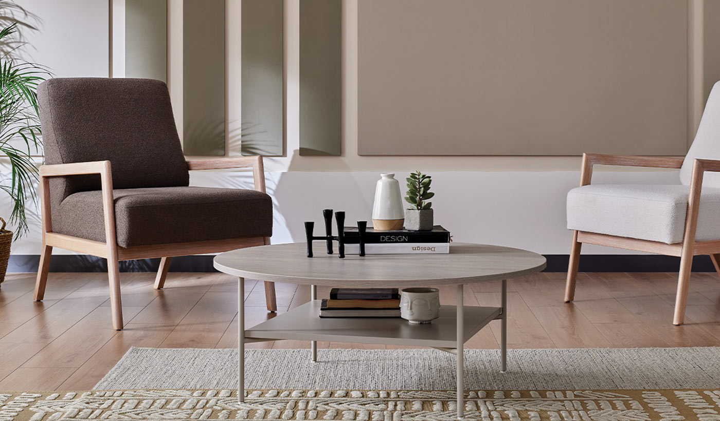 Բազելյան սուրճի սեղանը հիանալի համադրվում է Բազելի կահույքի հավաքածուի բոլոր իրերի հետ: