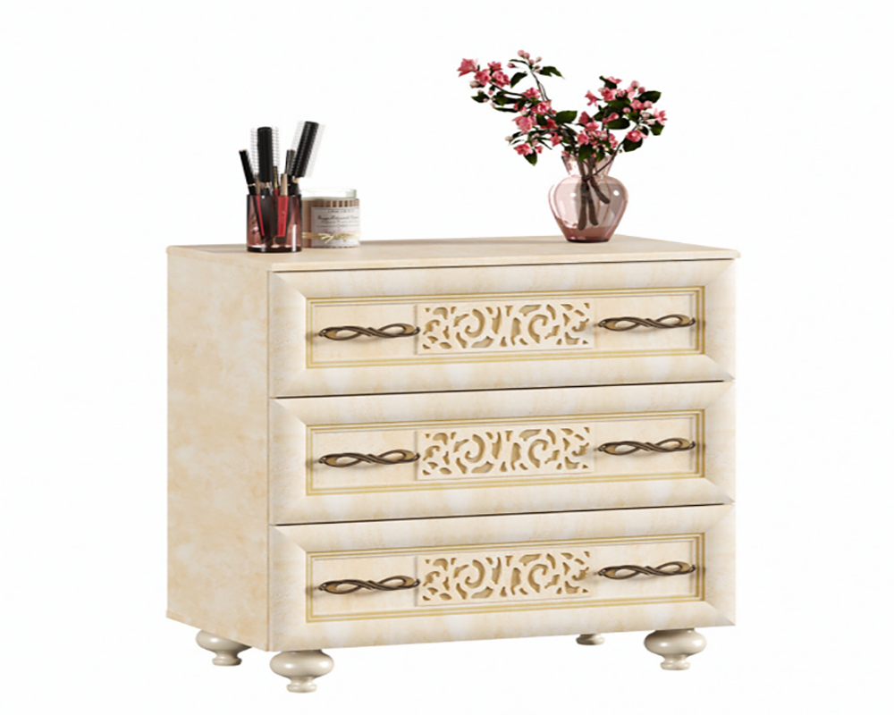 • 3 вместительных выкатных ящика на шариковых направляющих. • Максимальная нагрузка на выкатной ящик – 5 кг. • После сборки рекомендуется прикрепить комод к стене с помощью угловой подвески